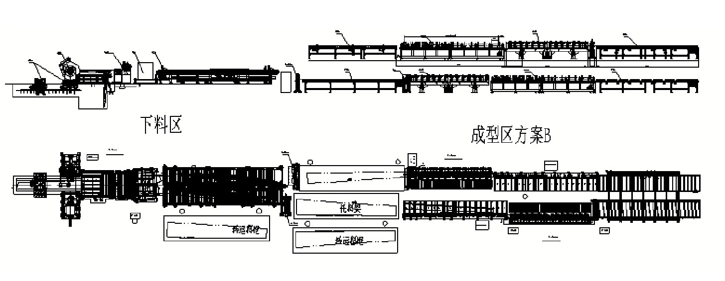2 該生產(chǎn)線能生產(chǎn)多種板寬、截面、長度的頂板,更換規(guī)格時(shí)需調(diào)整縱橫剪角度、沖缺口模具和切端頭擋料僅需調(diào)整相對(duì)位置,真空吸盤和翻邊壓料塊需根據(jù)板型不同做相應(yīng)更換,集中沖孔則需要根據(jù)板型的不同,調(diào)整個(gè)別沖孔機(jī),無需全部調(diào)整。通過以上操作,便可實(shí)現(xiàn)多種板型的生產(chǎn)。